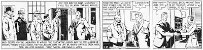 With the third week of "Adrift in an Atom," Brick and his scientist friend Dr. Kalla Kopak encounter a figure from Kalla's past, the insidious Franz Ego. Franz's plan is to use Kalla's size-changing Element 85 and use it to create an army of gigantic super soldiers who could conquer the world for him. It's strongly hinted that he is working at the behest of a foreign military power (possibly Hitler's Germany?).